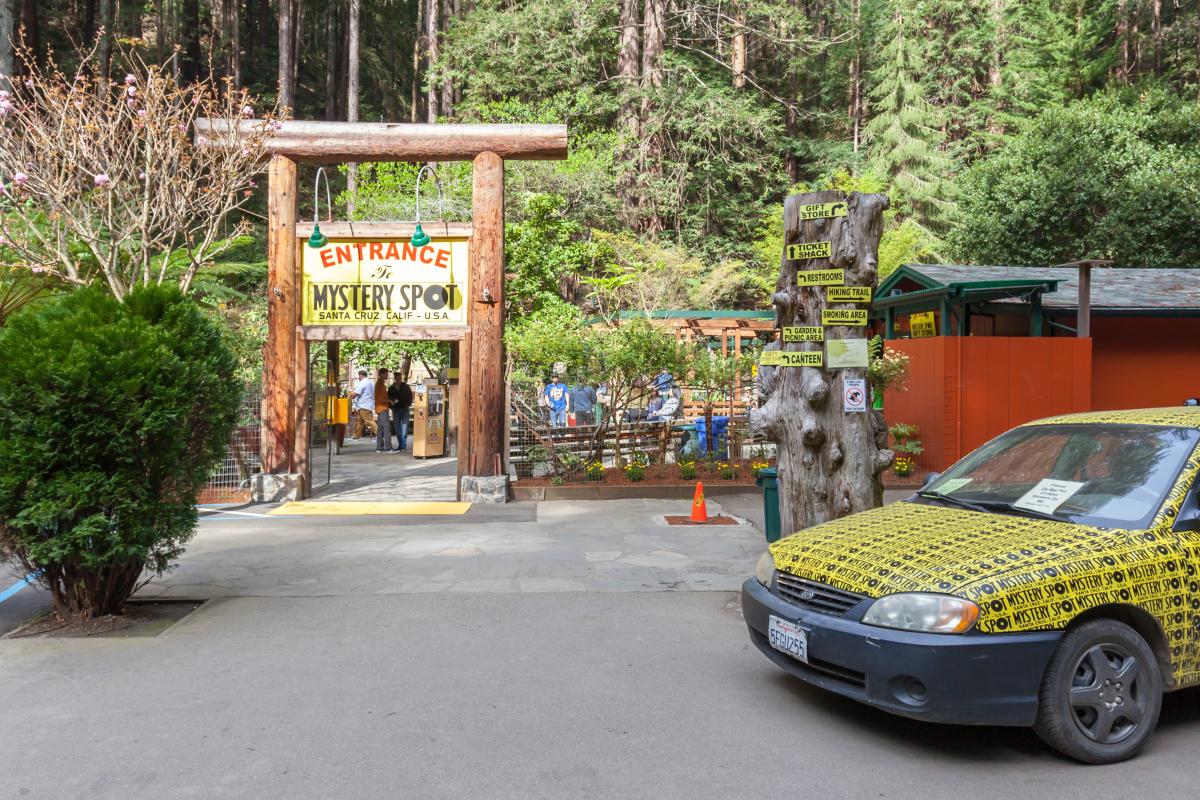 The Mystery Spot in Santa Cruz is a strange roadside attraction and a well-known tourist stop in California. First opened in 1949 by George Prather, the Mystery Spot is a place where guests can actively take part in defying gravity; it's recognized as a "gravity house" because the area has the ability to make the laws of physics disappear—balls roll uphill and people can lean over, well past their toes, without falling.