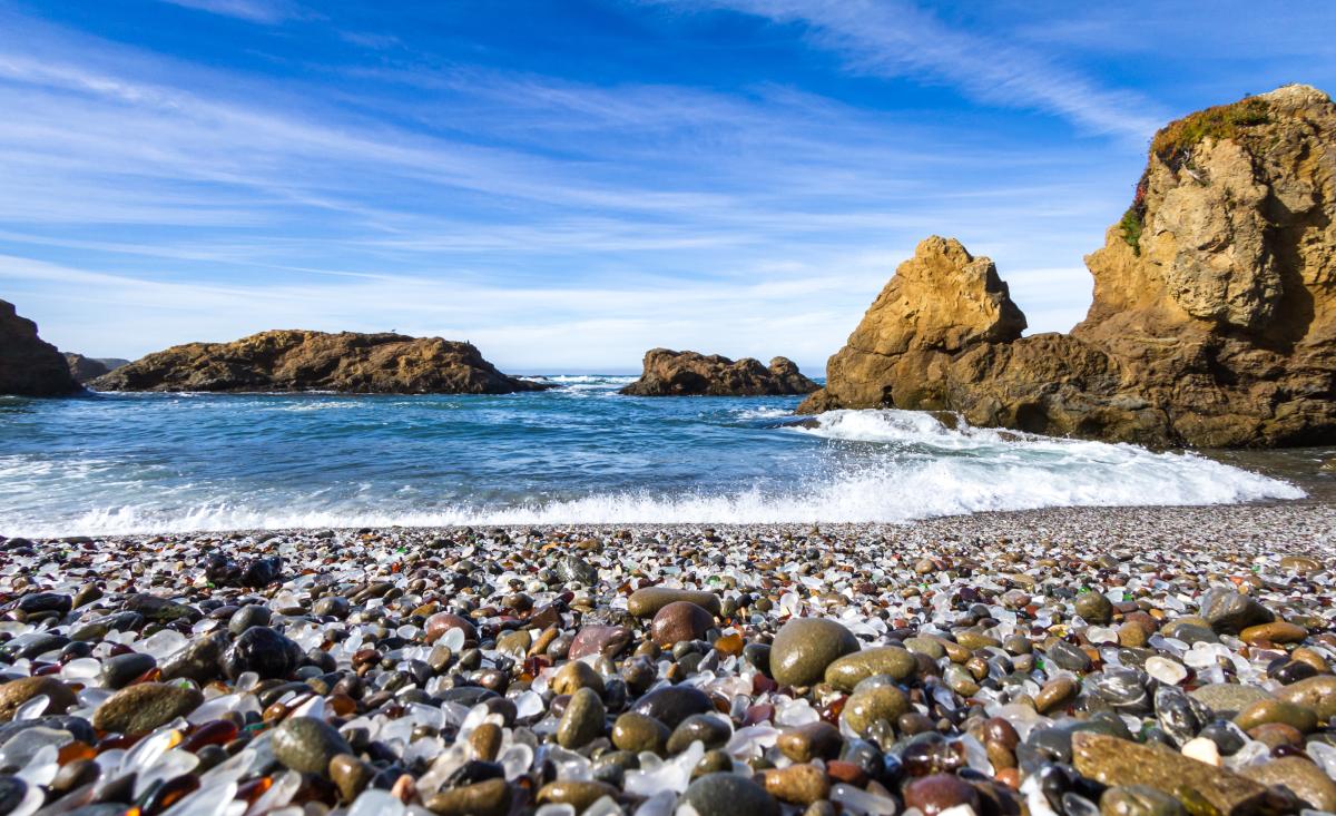 Travel to Fort Bragg to view one of the most unique beaches in California. Don't worry, you won't find super-sharp shards of broken glasses scattered about a gorgeous beach—rather, you'll see beautiful sea glass. Glass Beach was initially a dumping ground where locals would dispose of glass bottles and containers, but Mother Nature worked her magic over the years; the constant pounding of the waves transformed the broken pieces of glass into smooth stones (sans the sharp edges) that are a spectacle to behold.